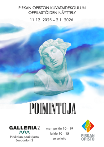 ”Poimintoja” - näyttely on läpileikkaus Pirkan opiston aikuisten taidekoulun arkisesta aherruksesta ja harjoitustehtävistä. Näyttelyn teosten tekijät opiskelevat taiteen perusopetuksen laajan oppimäärää toisella, kolmannella ja neljännellä vuosikurssilla. Näyttelyn kokoaminen ja pystytys on kolmannen vuosikurssin harjoitustyö.