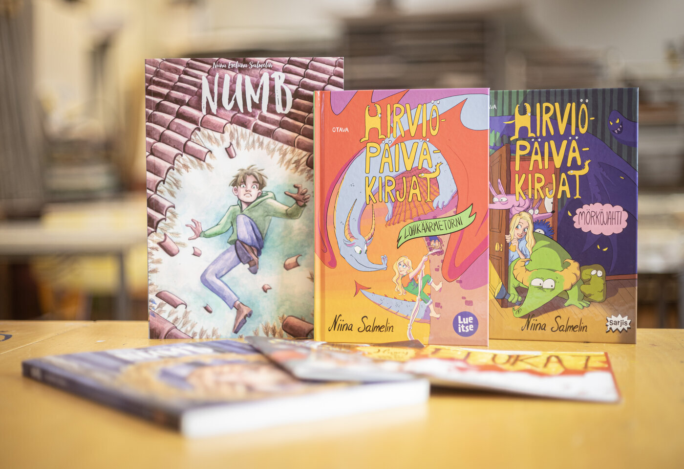 Niina Salmelinilta on julkaistu useita teoksia, kuten Numb, Numb 2 sekä Hirviöpäiväkirjat: Mörköjahti ja Lohikäärmetorni